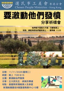 祈禱分享會更多... 11月11日 分享祈禱會 ~ 要激動他們發憤October 23, 2025