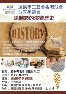祈禱分享會更多... 2026年3月10日 逾越節的演變歷史 分享祈禱會February 20, 2026