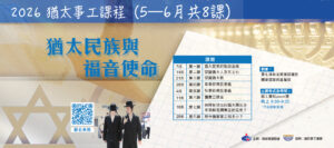裝備學習更多... 2026猶太事工課程 – 猶太民族與福音使命April 3, 2026