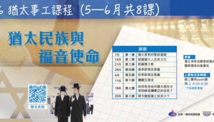 由環球宣愛協會主辦,選民事工差會協辦: 猶太民族與福音使命 5月7、14、21、28日及6月4、11、18、25日...